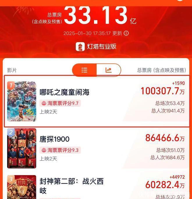 票房井喷、好评如潮,按照这个趋势不时走下去,只可说,2025年春节档票房冠军,必定非《哪吒2》莫属了!
