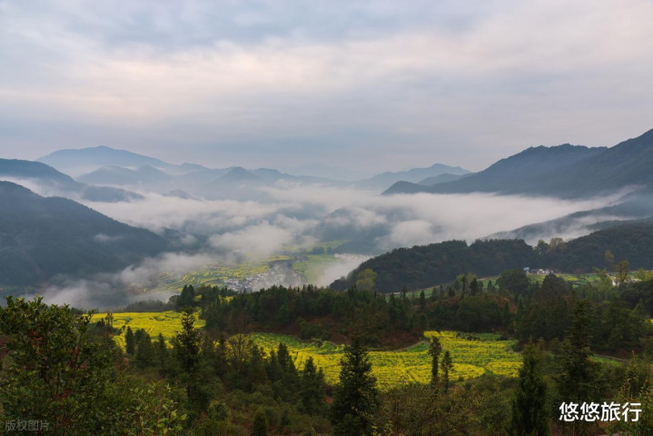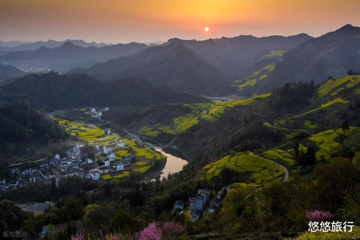 3月份婺源油菜花开放,梯田油菜花海与白墙黛瓦的徽派设立交相衬映,江岭万亩花田,黎明薄雾中宛如水墨画,适应拍照和感受旷野平定。
