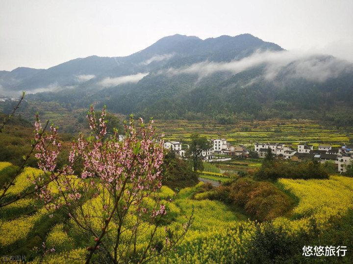 深山里的卖花渔村,2月梅花开放,沿着古说念踱步,梅花香气萦绕身旁,若是再碰上一场江南春雨,山谷潸潸缥缈,宛如瑶池。石潭村的桃花、油菜花,与古朴的屯子相互烘托。