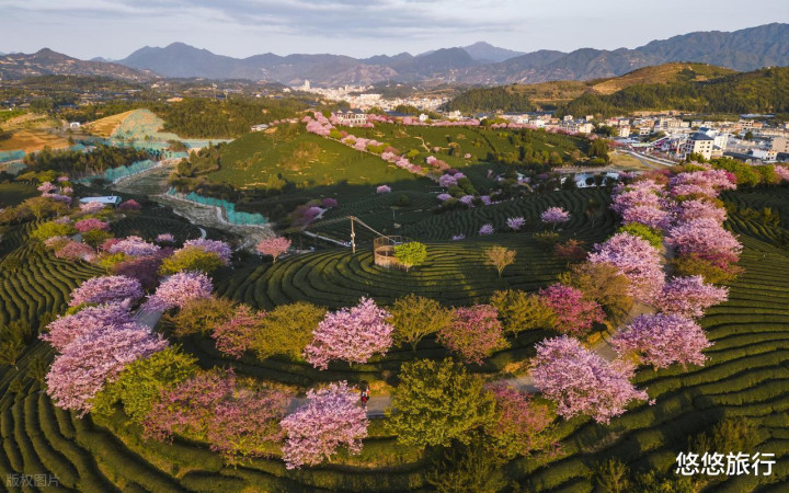 漳平县永福镇距离从龙岩市区,约2小时车程。1月下旬到3月中旬是永福樱花的开放期,多个品种的樱花在茶园中轮流开放。
