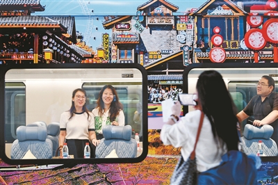 旅客登上京津冀不雅光旅游列车“星光·燕赵号”照相/本报记者 袁艺