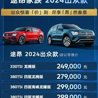 “卷价钱”?上汽环球不缺席。 2024款环球途昂家眷出众款认真上市shibo体育游戏app平台,其半途昂出众款推出7款车型,指令价24.9万-38.9万元;途昂X出众款推出5款车型,指令价26.9万-37.9万元。 本次上市的2024款环球途昂家眷出众款属于老例改款版块,转移的要点体现时功能设置和价钱层面shibo体育游戏app平台,其半途昂出众款的起售价下调4.6万元,途昂X出众款的起售价比拟下调1.59万元。 能源方面,途昂出众款领有2.0T(330TSI)、高功率2.0T(380TSI)以及2.5T V6(530 V6)能源版块可选,最大功率分袂为137千瓦、162千瓦、220千瓦,传动系统匹配7速湿式双聚散变速箱。 途昂X出众款仅提供高功率2.0T(380TSI)和2.5T V6(530 V6)能源版块,最大功率分袂为162千瓦、220千瓦,与之匹配的相同是7速湿式双聚散变速箱。 在国内汽车行业加快电动化转型确当下,理念念L7、问界M7等中大型新能源SUV对环球途昂的市集进展变成较大冲击,况且参加2024年以来,“价钱战”愈演愈烈,个别新能源车企一度喊出“电比油低”的标语。 如今,上汽环球再次用本色举止对“价钱战”进行修起,那么以24.9万元的起售价钱,你以为环球途昂家眷能在销量层面终了攻击吗?宽待发表办法。