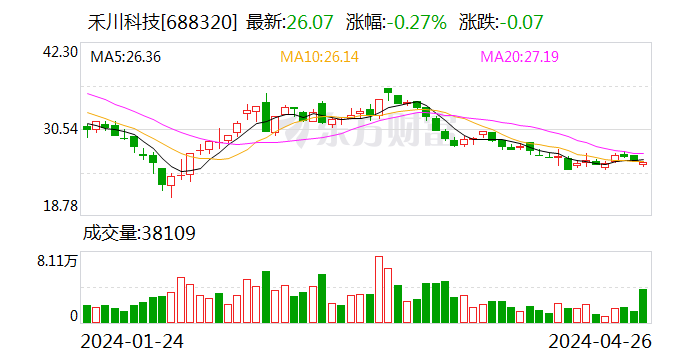 证券时报·数据宝统计深刻,禾川科技当天收盘价为26.07元,下落0.27%,日换手率为3.67%,成交额为9804.42万元,全上帝力资金净流出1406.52万元,近5日该股累计上升1.80%,近5日资金共计净流出1795.55万元。