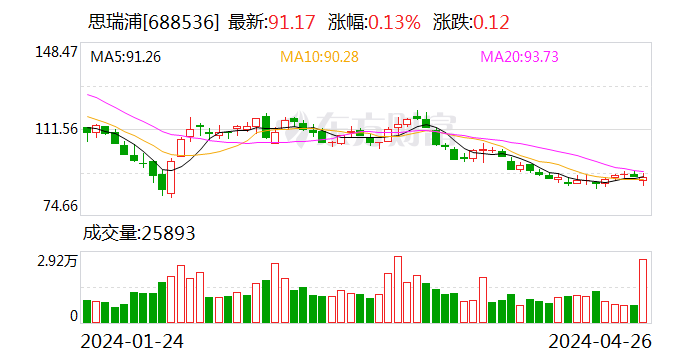 想瑞浦4月26日大量往来平台共发生4笔成交,运筹帷幄成交量46.27万股,成交金额4218.16万元。成交价钱均为91.17元。