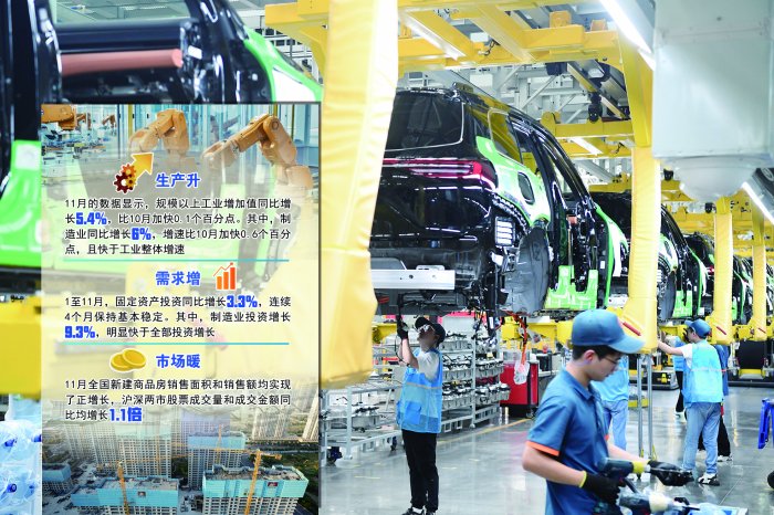 民生银行首席经济学家兼筹商院院长温彬分析,汽车制造业加多值同比增速较10月加速5.8个百分点,主淌若受到“两新”政策以及出口回升的带动。