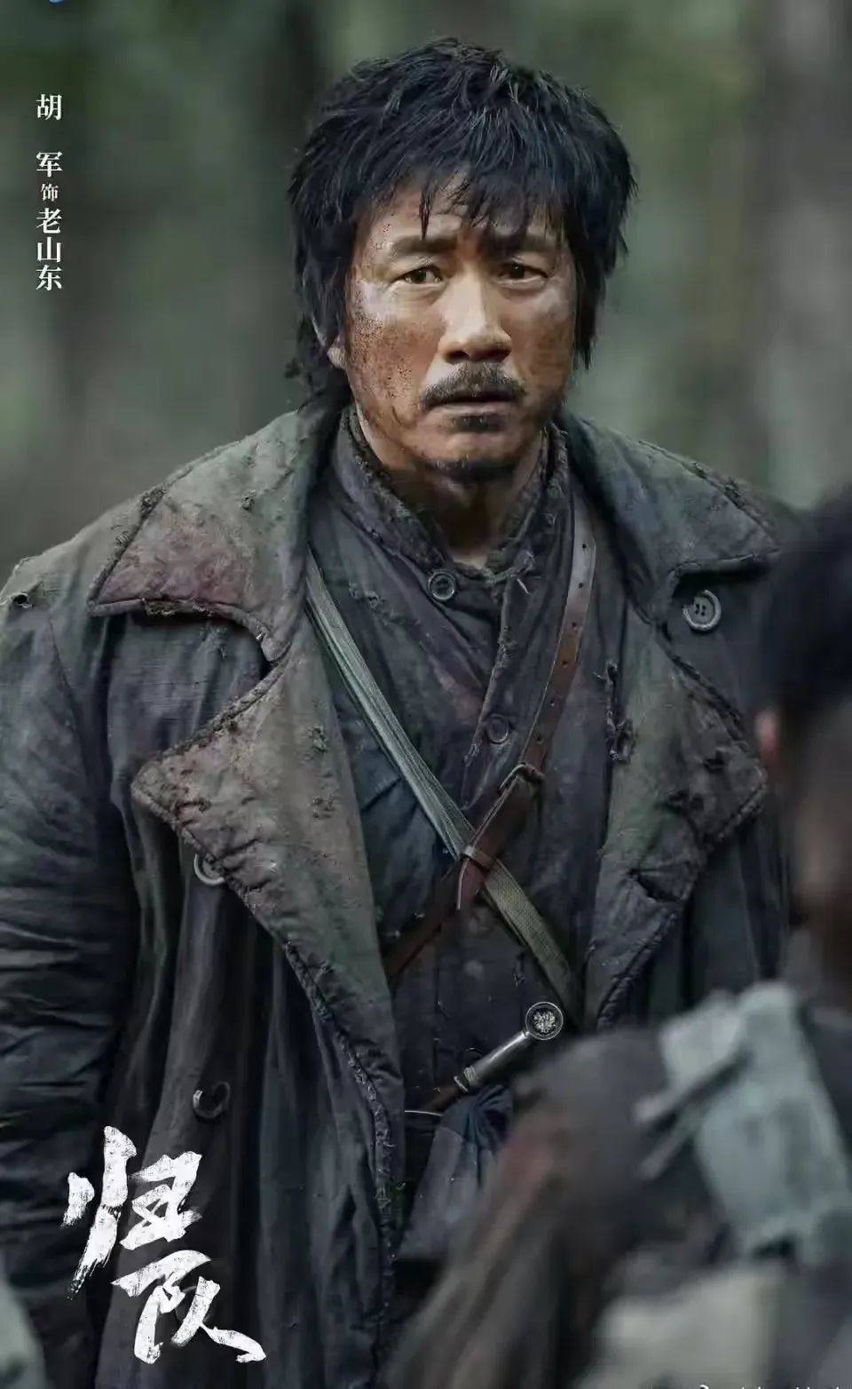 本年上半年刚刚凭借《北上》谢苍老再次火出圈的胡军,他在剧中扮演男一号老山东,也即是排长鲁长山。