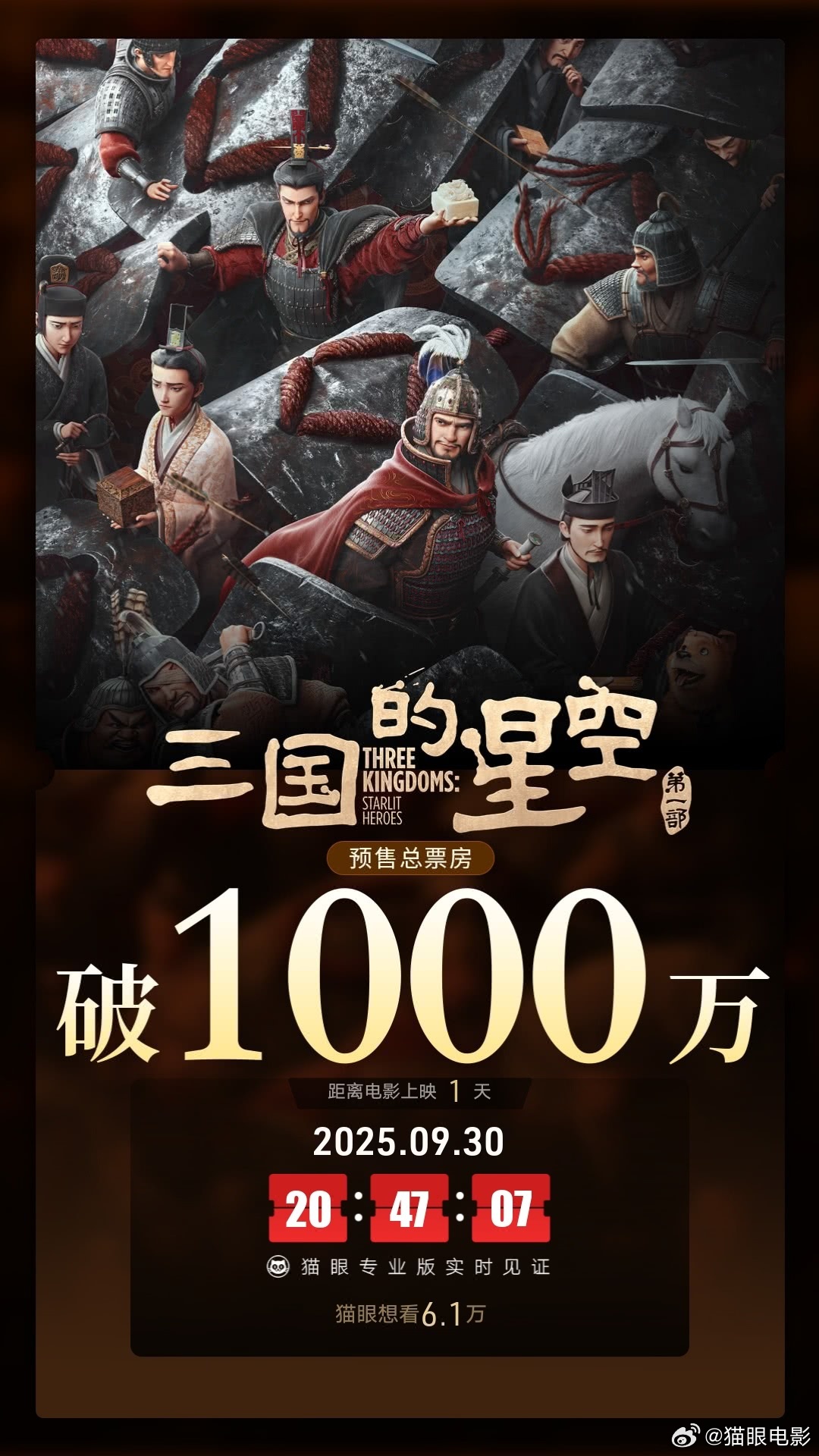 据猫眼专科版数据世博体育app下载,电影《三国的星空第一部》映前1天,点映及预售总票房破1000万。