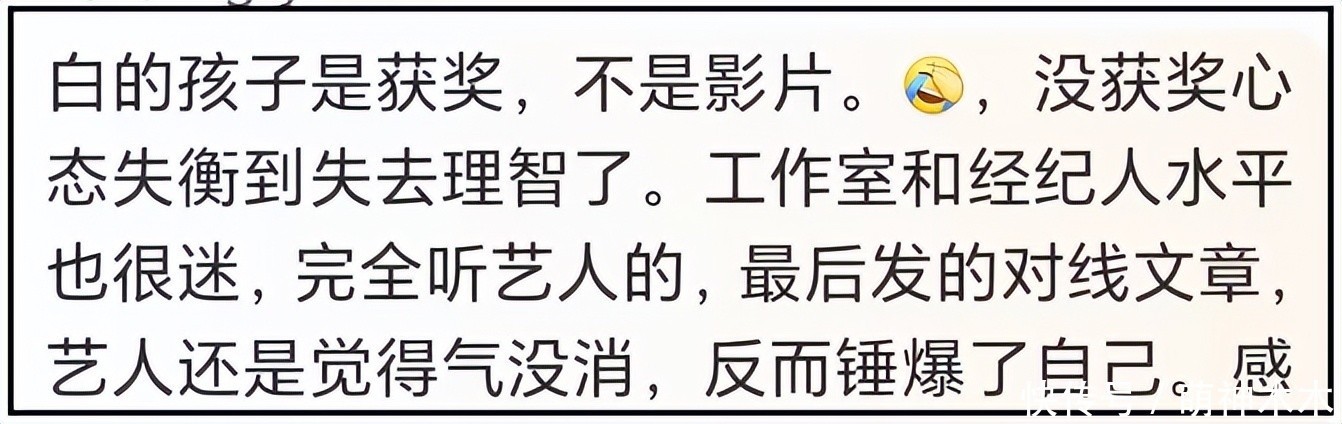 除了业内东说念主士,一些大V也认为,白百何此次的作念法不体面,《春树》是她主演的作品,对演员而言,作品就像孩子,不管谁得奖,齐应该好好襄助。对此,网友的评价很机敏——白百何的孩子不是作品,而是奖项。