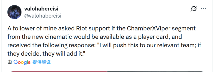 "我有位粉丝问了拳头客服,新CG里尚勃勒抱着蝰蛇那幕能弗成作念成卡面,获得的酬谢如下:'我会将此问题响应给有关团队;要是他们作念出了决定,那就会有。'"