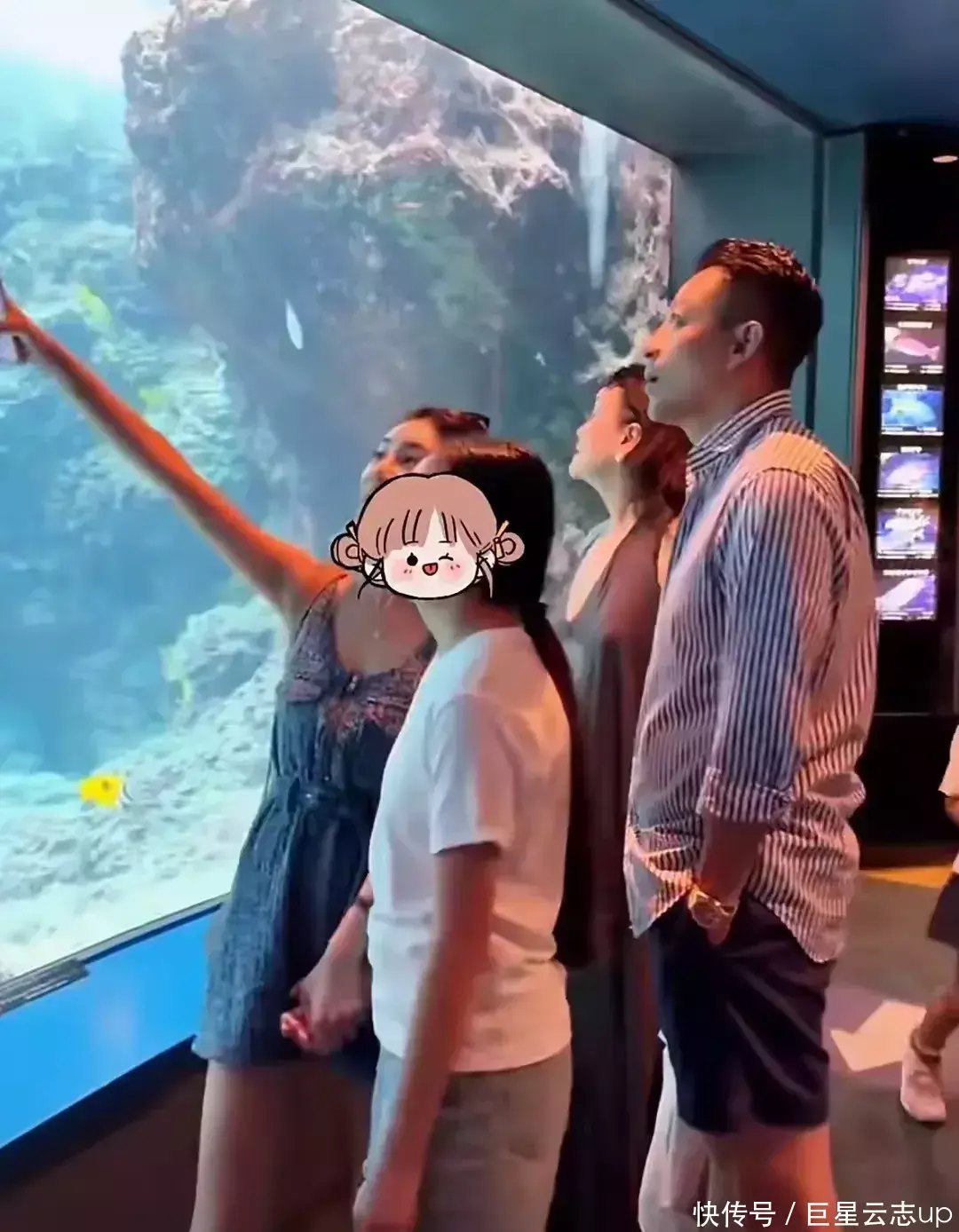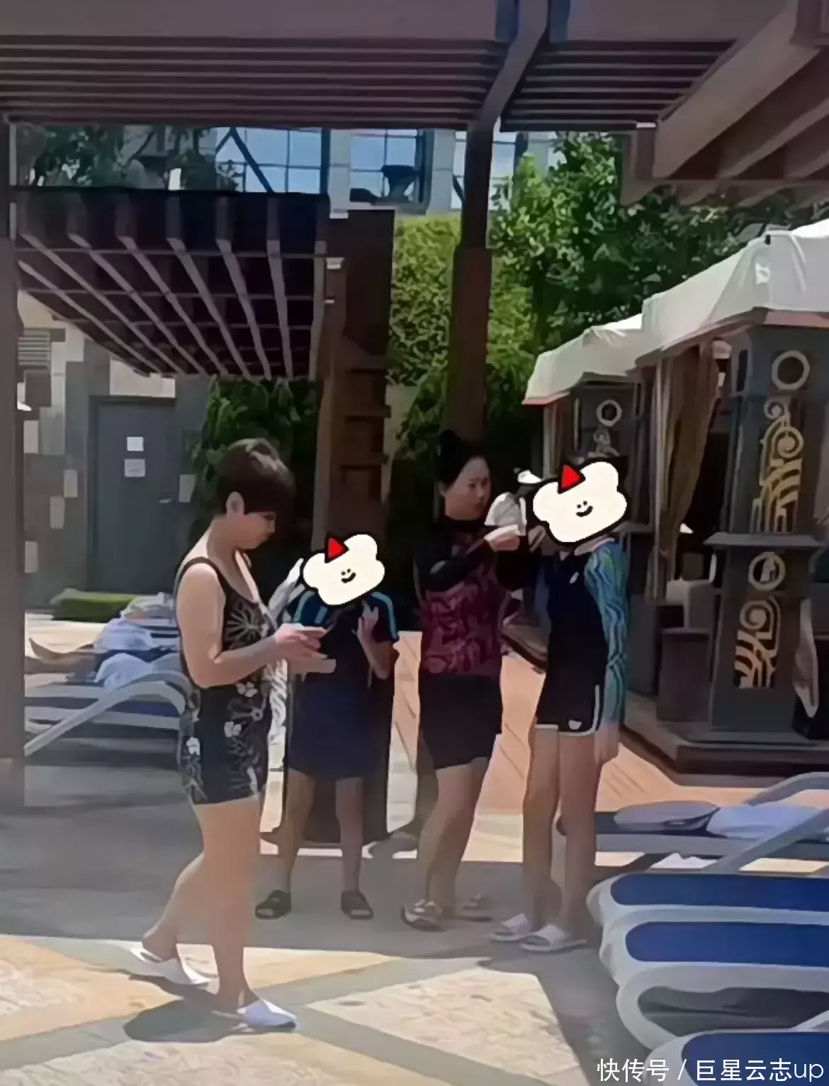 保姆小杨大姨持久跟在摆布,网友拍到他们全部拍浮的画面。