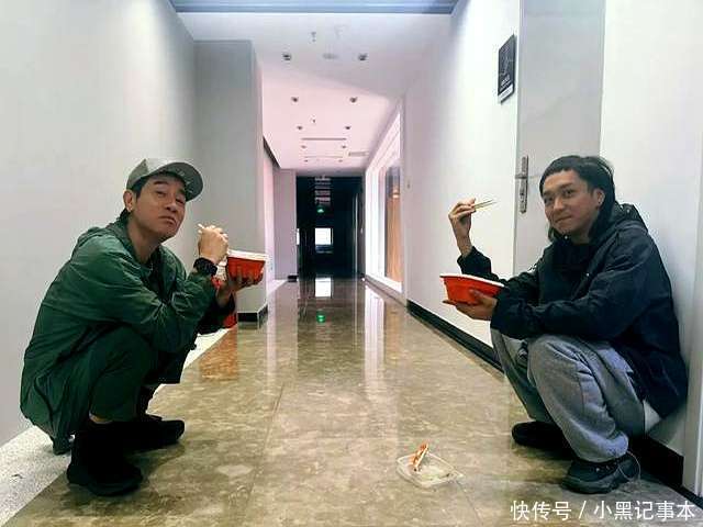 为了争取时辰,陈小春和职责主说念主员只可在走廊边缘里轻便地吃盒饭,绝顶朴素。