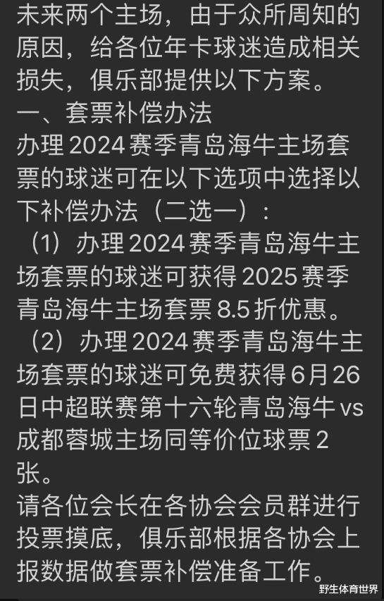 据悉,青岛海牛俱乐部将会因为空场而对合手有年卡的球迷进行抵偿,具体要道(2选1)如下,第1种:球迷不错遴荐在购买2025赛季青岛海牛主场套票时享有8.5折的优惠,其二俱乐部不错为球迷免费提供两张6月26日中超联赛第16轮青岛海牛主场同成王人蓉城主场比赛的同等价位球票两张。